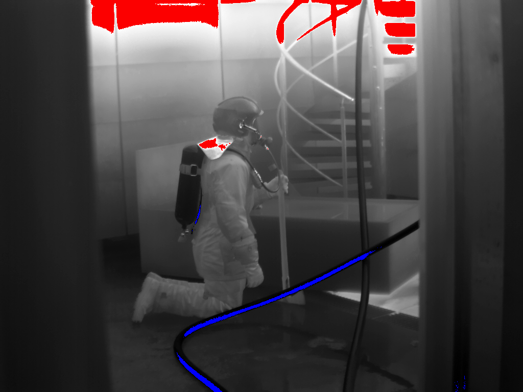 For an isotherm, as shown in the image below, the defined temperature above threshold is colored red and beneath another threshold blue. - Both modes are available together: a non-linear viewer image and a parallel output of temperature linear data.