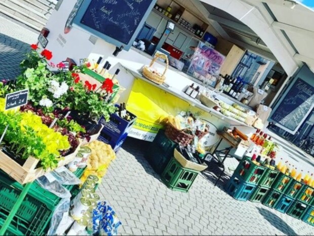 Based on idea from an employee, a mobile organic farm store supplies employees with regional and seasonal products every Friday on the front yard of the production buildings in Jena.